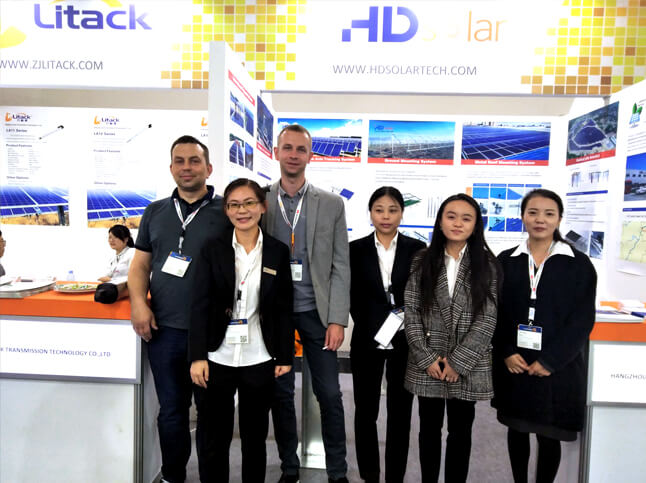 弊社は、中国の自社工場で生産した高性能・低価格な野立て架台システムを展示し、数ある太陽光発電用の架台メーカーの中でも、その品質や価格、アフターサービスの充実などの優位性をアピールします。会期を通し、ヨーロッパや中東、南アジア、アフリカなどの販売会社と有意義な商談を行うことが出来ました。